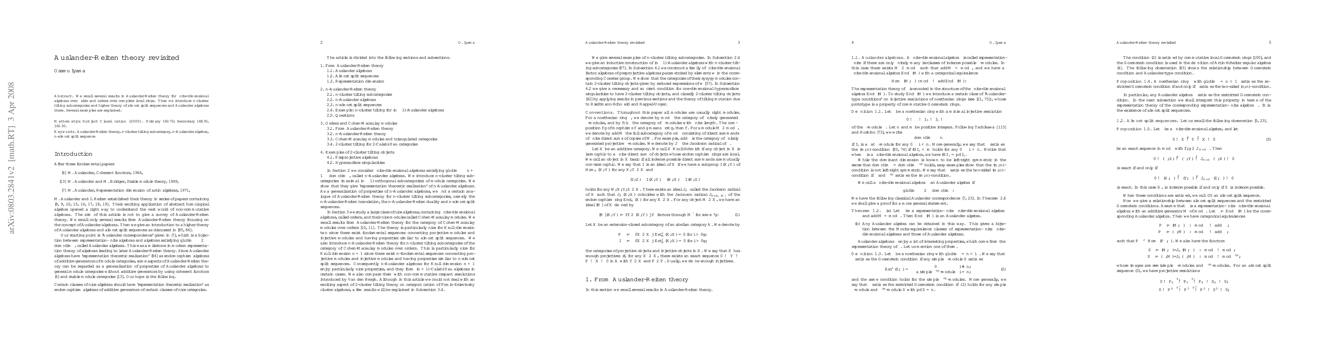 This paper revisits Auslander-Reiten theory, focusing on finite-dimensional algebras and orders over complete local rings. It introduces $n$-cluster tilting subcategories and explores the higher theory of almost split sequences and Auslander algebras, with illustrative examples provided.