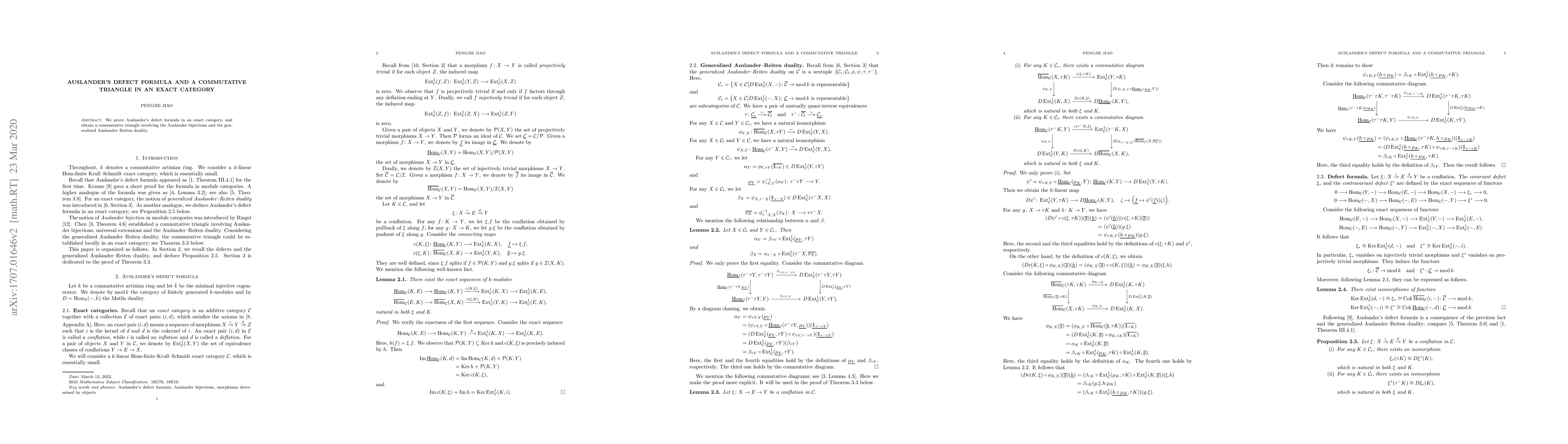 Summary: This paper establishes Auslander's defect formula within the context of exact categories and introduces a commutative triangle that connects Auslander bijections with generalized Auslander-Reiten duality.