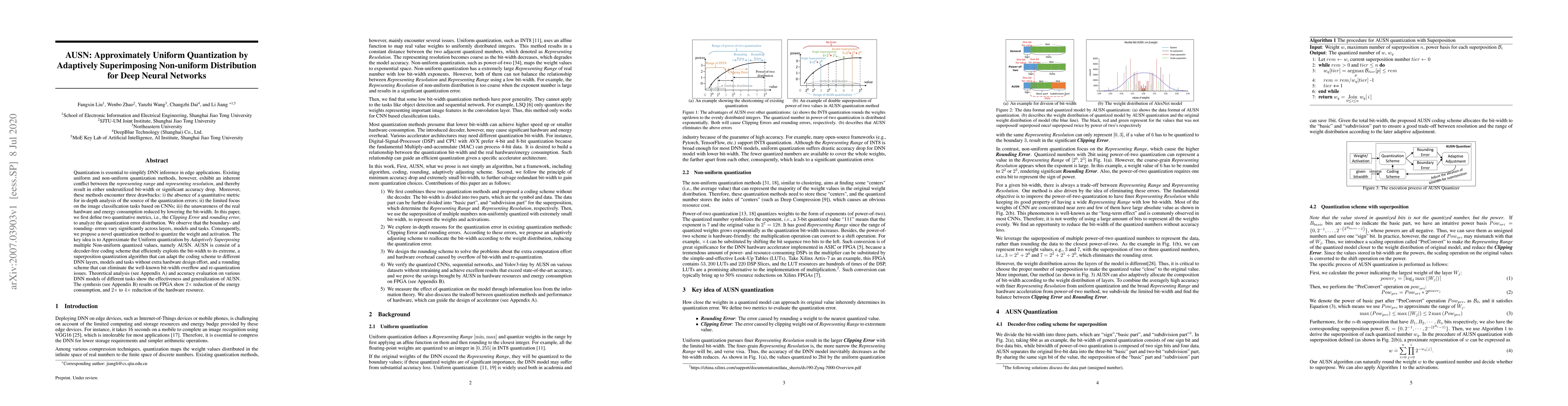 This paper proposes AUSN, a novel quantization method to enhance DNN inference efficiency in edge applications by adaptively superimposing non-uniform distributions. It addresses existing quantization issues by introducing metrics for error analysis and demonstrating significant reductions in hardware resource usage and energy consumption.