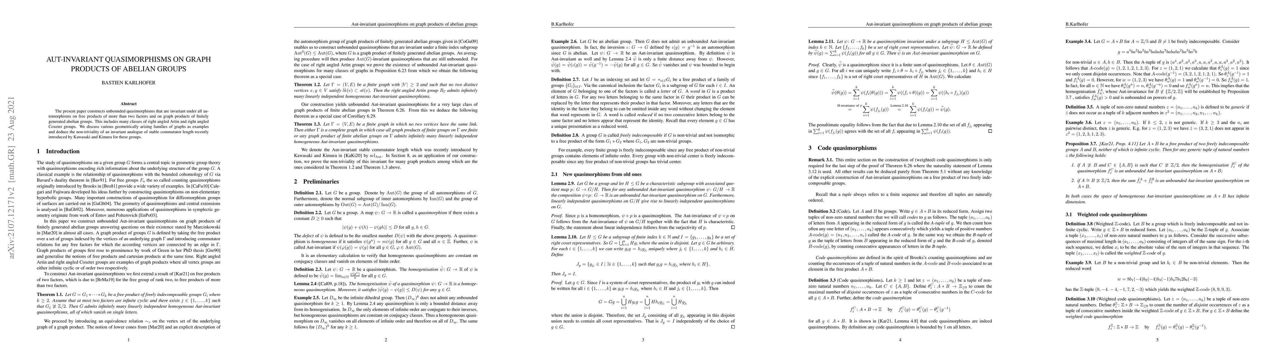 This paper constructs unbounded quasimorphisms invariant under automorphisms for graph products of abelian groups, specifically for free products and right angled Artin/Coxeter groups. It also establishes the non-triviality of a stable commutator length analogue for these groups.
