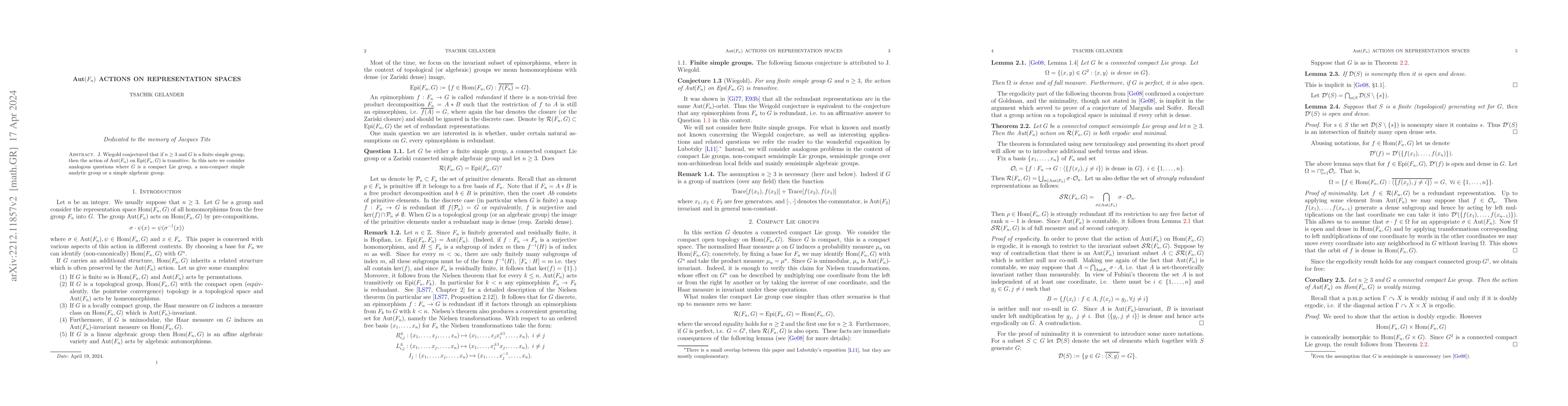 Summary: This paper explores the conjecture by J. Wiegold regarding the transitivity of Aut(F_n) actions on epimorphisms from the free group F_n to various types of groups, including compact Lie groups, non-compact simple analytic groups, and simple algebraic groups. The focus is on extending the conjecture beyond finite simple groups.