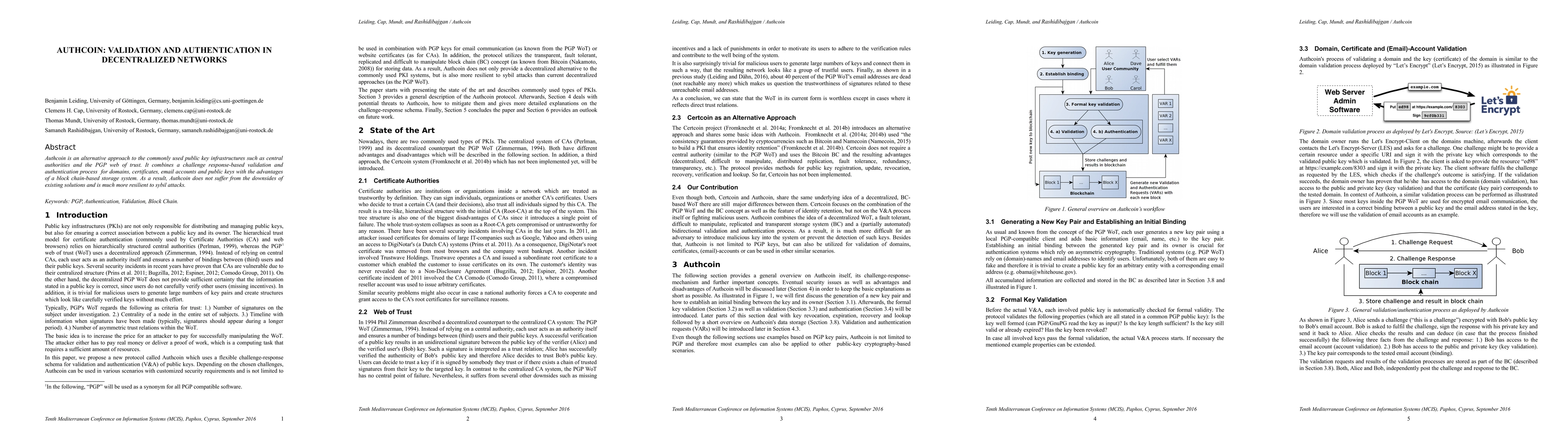 Authcoin offers a blockchain-based validation and authentication system that combines challenge response methods with decentralized storage, avoiding common issues in traditional public key infrastructures.