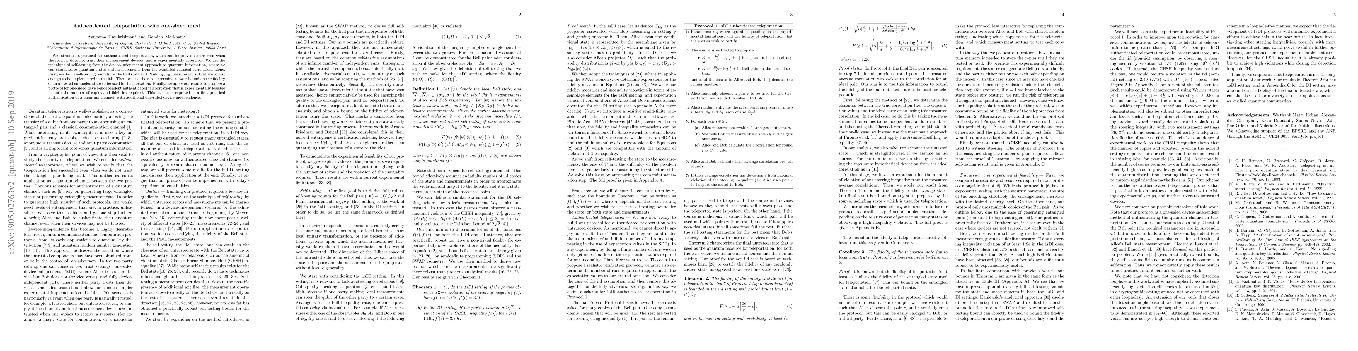 Researchers developed a protocol for authenticated teleportation that can work even when the receiver doesn't trust their measurement devices, using self-testing techniques to verify quantum states.