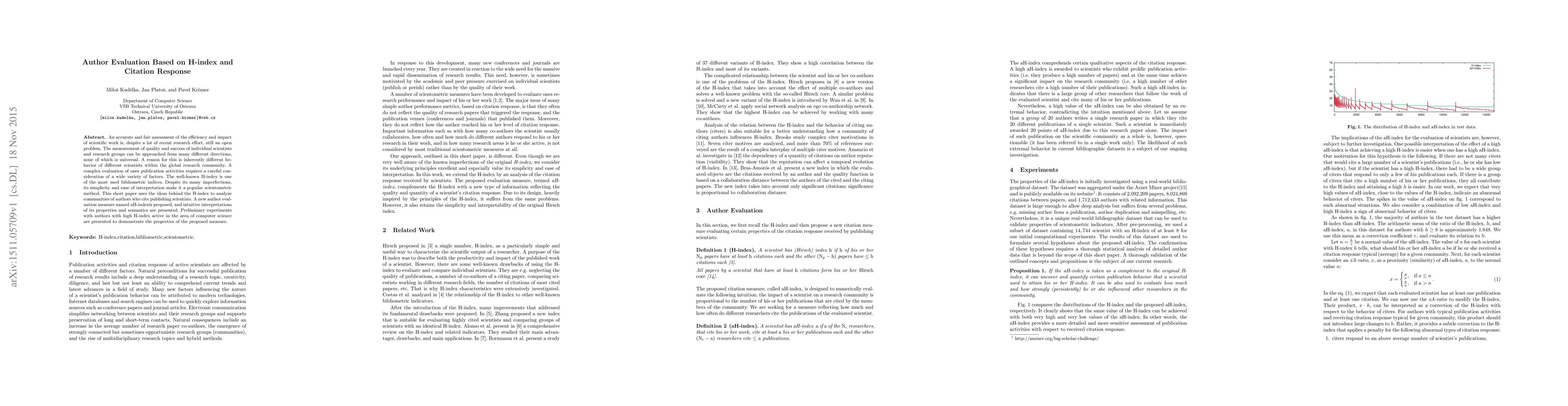 This paper proposes a new author evaluation measure called aH-index, building on the H-index concept, to assess the impact and efficiency of scientific work by analyzing communities of authors who cite publishing scientists. Preliminary experiments with computer science authors demonstrate the measure's properties.