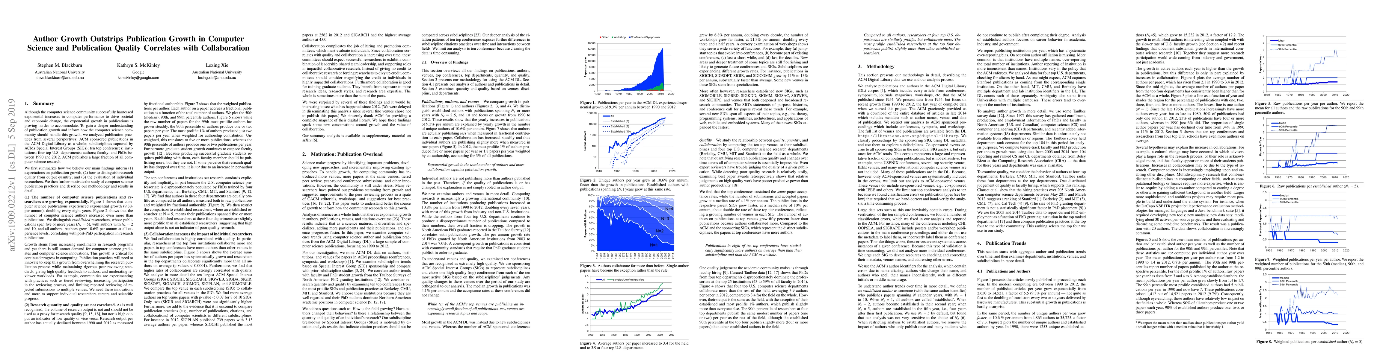 This paper analyzes the growth of computer science publications from 1990 to 2012, finding that author growth has outpaced publication growth, and that publication quality correlates with collaboration. The study aims to inform expectations on publication growth, distinguish research quality from quantity, and evaluate individual researchers.