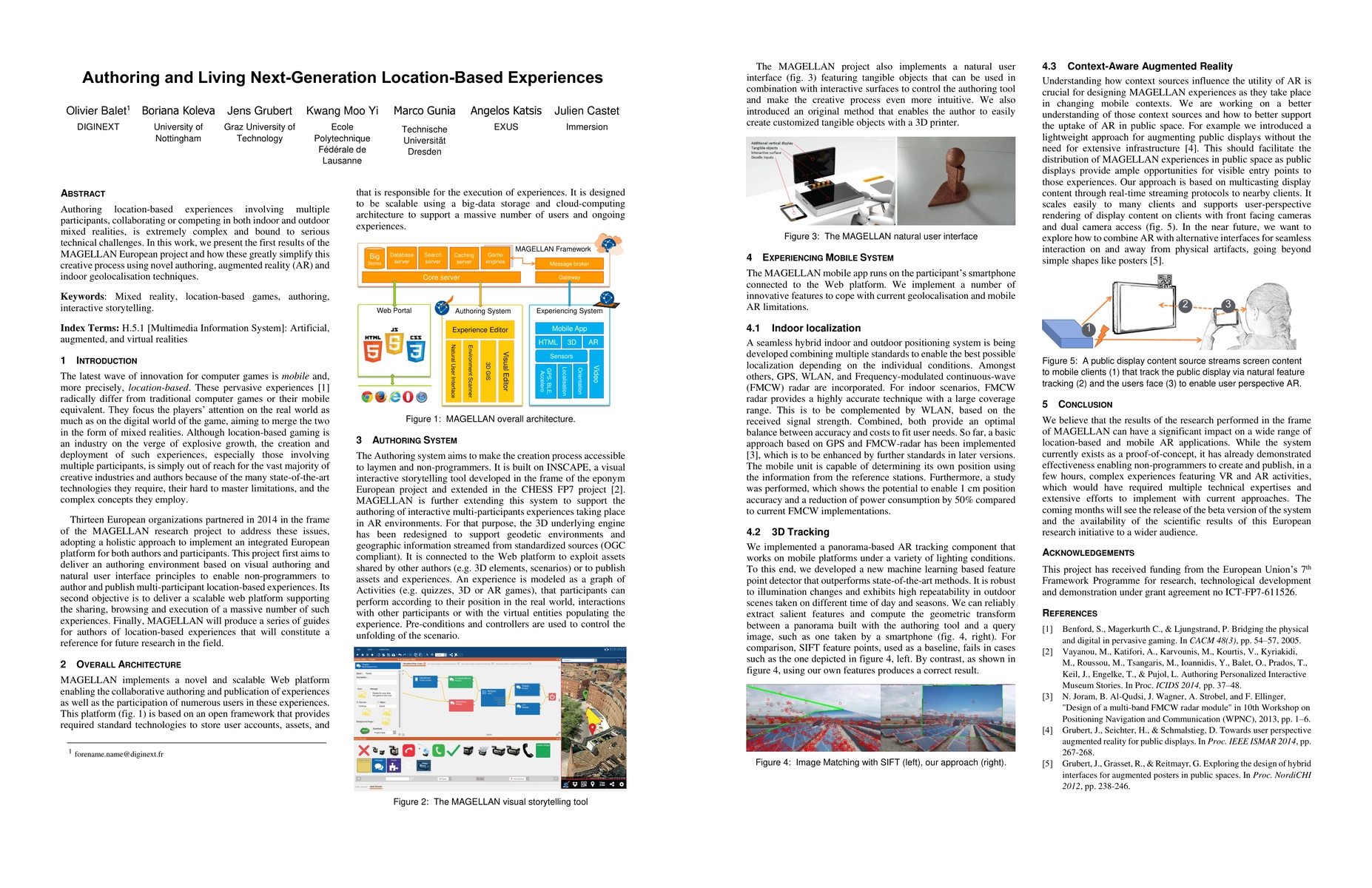 This paper introduces MAGELLAN project results that simplify the creation of complex, multi-participant location-based experiences through innovative authoring, augmented reality, and indoor geolocation techniques. These advancements aim to tackle the technical challenges inherent in mixed reality environments.