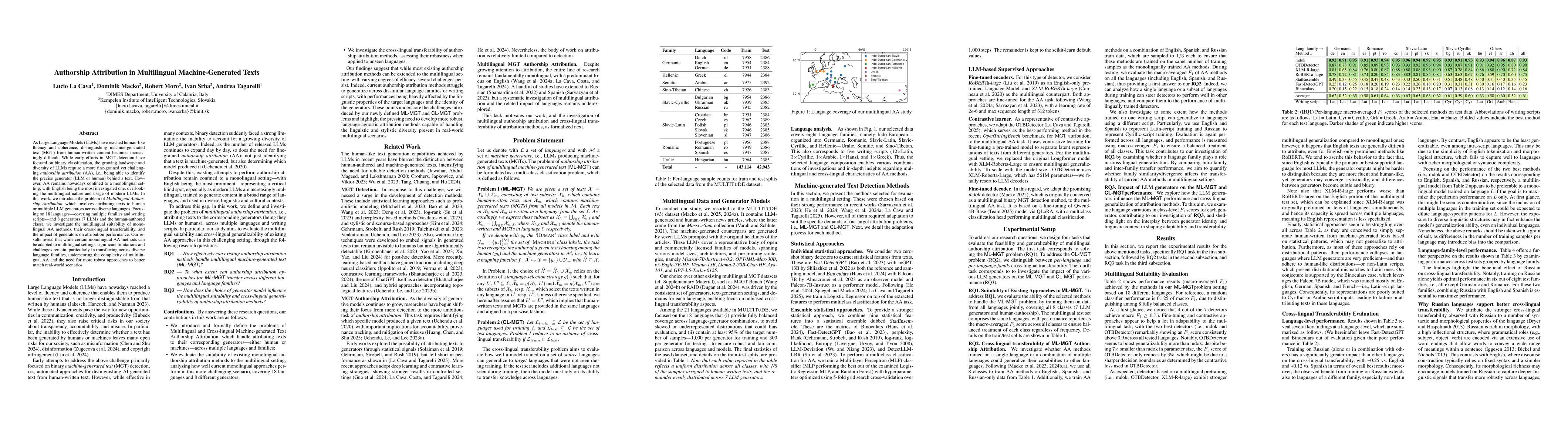 As Large Language Models (LLMs) have reached human-like fluency and coherence, distinguishing machine-generated text (MGT) from human-written content becomes increasingly difficult. While early efforts in MGT detection have focused on binary classification, the growing landscape and diversity of LLMs require a more fine-grained yet challenging authorship attribution (AA), i.e., being able to identify the precise generator (LLM or human) behind a text. However, AA remains nowadays confined to a monolingual setting, with English being the most investigated one, overlooking the multilingual nature and usage of modern LLMs. In this work, we introduce the problem of Multilingual Authorship Attribution, which involves attributing texts to human or multiple LLM generators across diverse languages. Focusing on 18 languages -- covering multiple families and writing scripts -- and 8 generators (7 LLMs and the human-authored class), we investigate the multilingual suitability of monolingual AA methods, their cross-lingual transferability, and the impact of generators on attribution performance. Our results reveal that while certain monolingual AA methods can be adapted to multilingual settings, significant limitations and challenges remain, particularly in transferring across diverse language families, underscoring the complexity of multilingual AA and the need for more robust approaches to better match real-world scenarios.