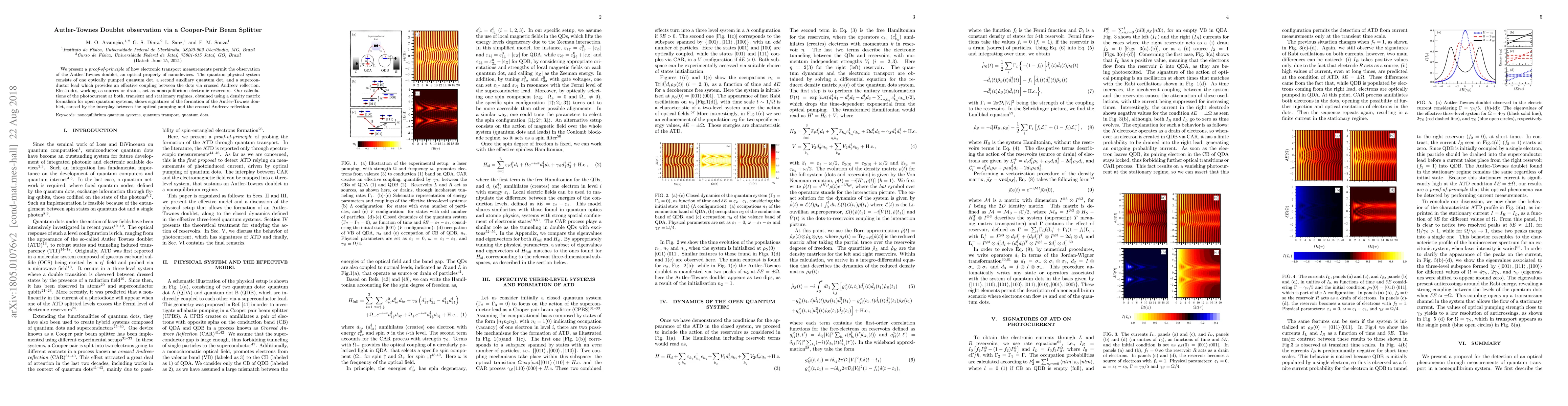 This paper demonstrates the observation of the Autler-Townes doublet in electronic transport measurements through a quantum system involving an optically pumped quantum dot and a superconductor lead coupled via crossed Andreev reflection, showing signatures using density matrix formalism for open quantum systems. The study highlights the interplay between optical pumping and Andreev reflection in forming the doublet.