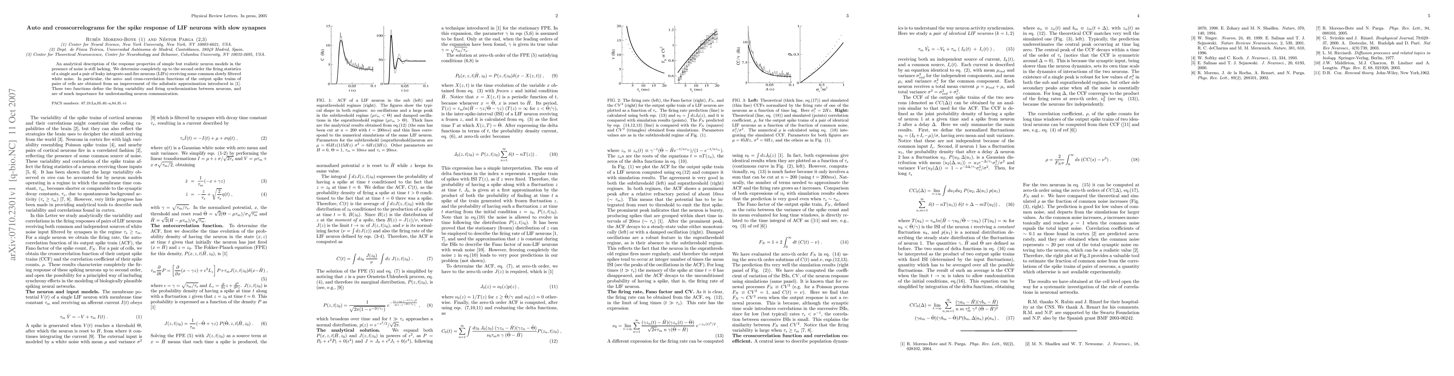An analytical description of the response properties of simple but realistic neuron models in the presence of noise is still lacking. We determine completely up to the second order the firing statistics of a single and a pair of leaky integrate-and-fire neurons (LIFs) receiving some common slowly filtered white noise. In particular, the auto- and cross-correlation functions of the output spike trains of pairs of cells are obtained from an improvement of the adiabatic approximation introduced in \cite{Mor+04}. These two functions define the firing variability and firing synchronization between neurons, and are of much importance for understanding neuron communication.