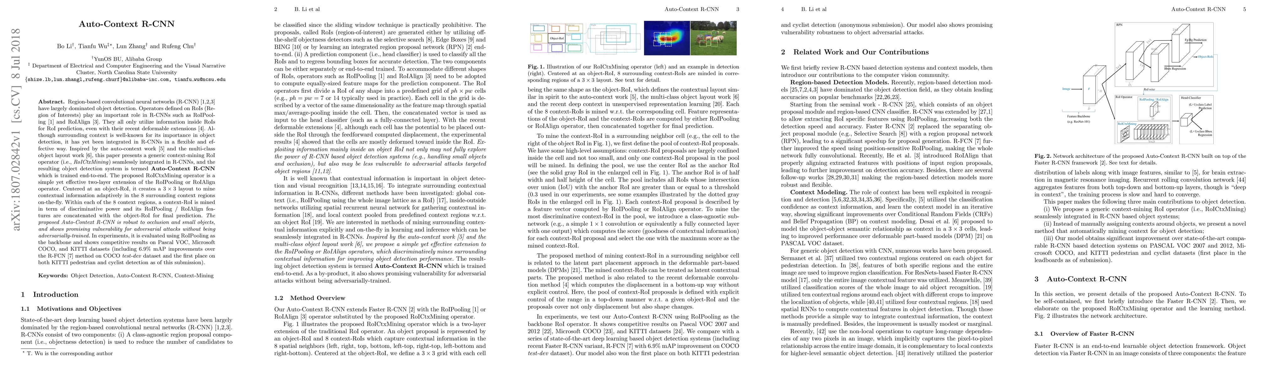 Auto-Context R-CNN proposes a new object detection system that leverages contextual information to improve accuracy, outperforming existing methods on popular datasets.