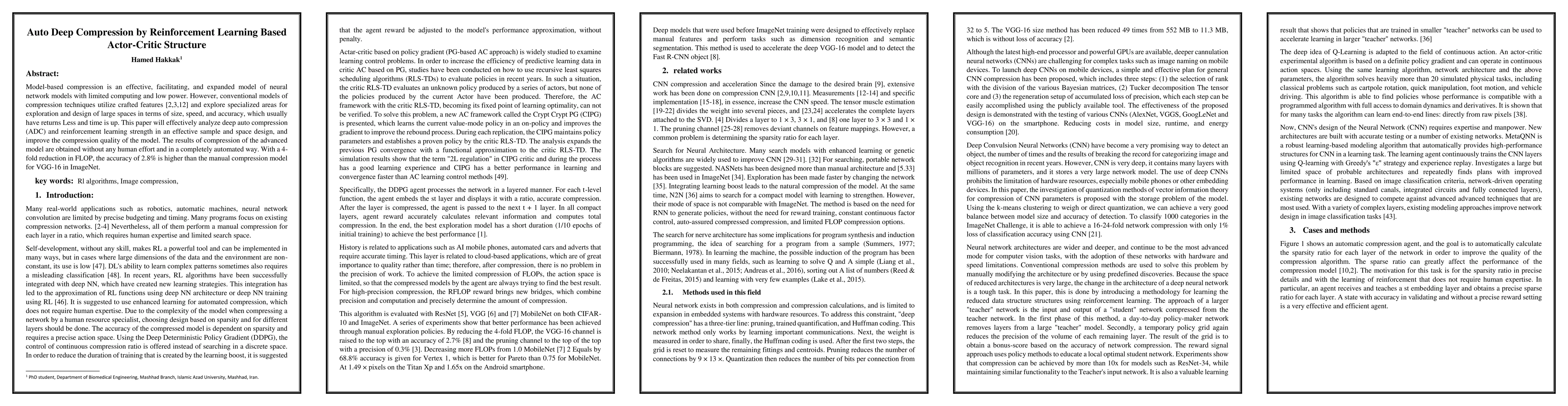 A new approach to deep compression uses reinforcement learning to automate model compression with a 4-fold reduction in FLOP without human effort. This results in improved accuracy and efficiency for models like VGG-16.