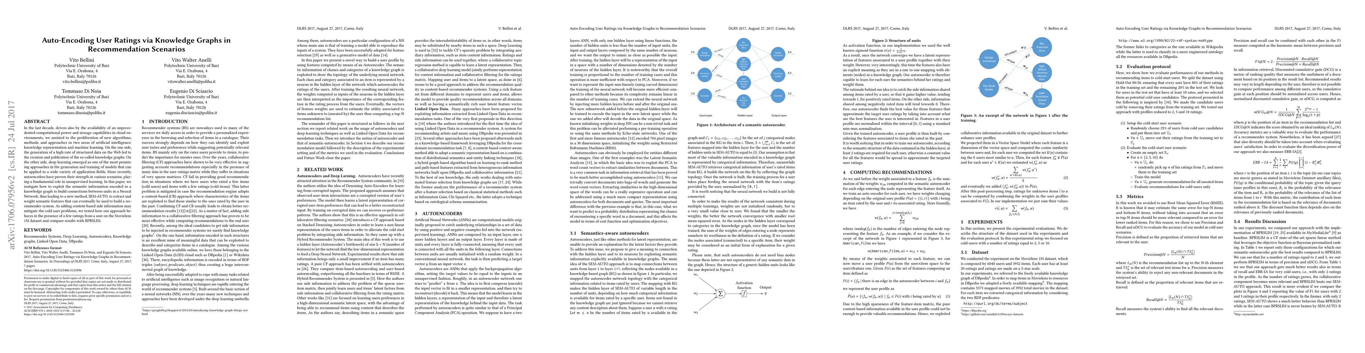 In the last decade, driven also by the availability of an unprecedented computational power and storage capabilities in cloud environments we assisted to the proliferation of new algorithms, methods, and approaches in two areas of artificial intelligence: knowledge representation and machine learning. On the one side, the generation of a high rate of structured data on the Web led to the creation and publication of the so-called knowledge graphs. On the other side, deep learning emerged as one of the most promising approaches in the generation and training of models that can be applied to a wide variety of application fields. More recently, autoencoders have proven their strength in various scenarios, playing a fundamental role in unsupervised learning. In this paper, we instigate how to exploit the semantic information encoded in a knowledge graph to build connections between units in a Neural Network, thus leading to a new method, SEM-AUTO, to extract and weigh semantic features that can eventually be used to build a recommender system. As adding content-based side information may mitigate the cold user problems, we tested how our approach behave in the presence of a few rating from a user on the Movielens 1M dataset and compare results with BPRSLIM.