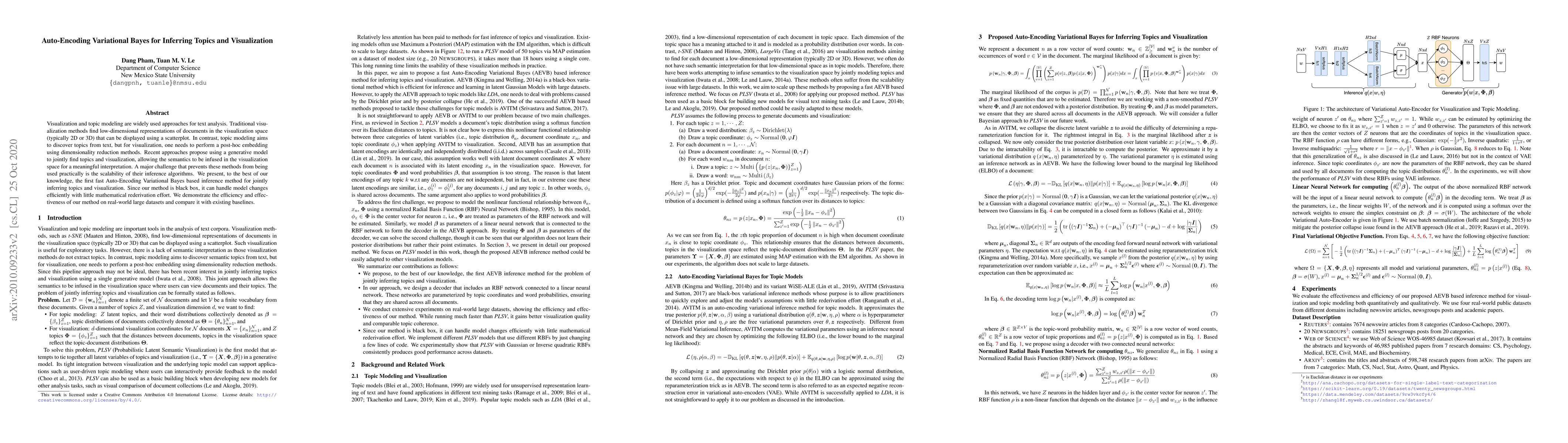This paper introduces a fast Auto-Encoding Variational Bayes method for jointly inferring topics and visualization in text analysis, addressing scalability issues. The proposed black-box approach efficiently handles model changes and demonstrates effectiveness on large datasets.