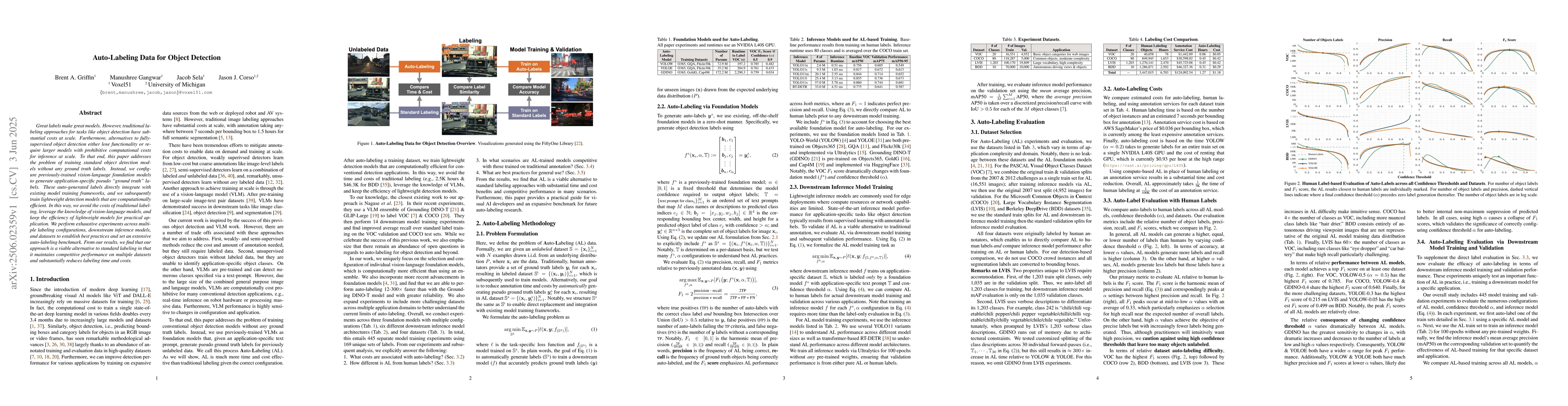 The paper presents a novel method of auto-labeling data for object detection using vision-language foundation models, which directly integrates with standard training frameworks.