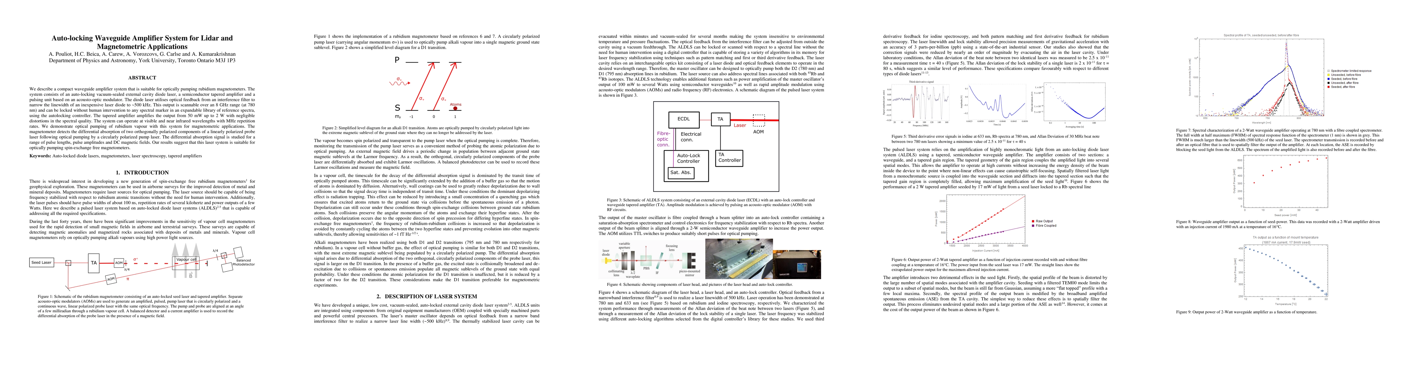 The research describes a compact waveguide amplifier system for optically pumping rubidium magnetometers, utilizing an auto-locking vacuum-sealed external cavity diode laser, a semiconductor tapered amplifier, and a pulsing unit based on an acousto-optic modulator.