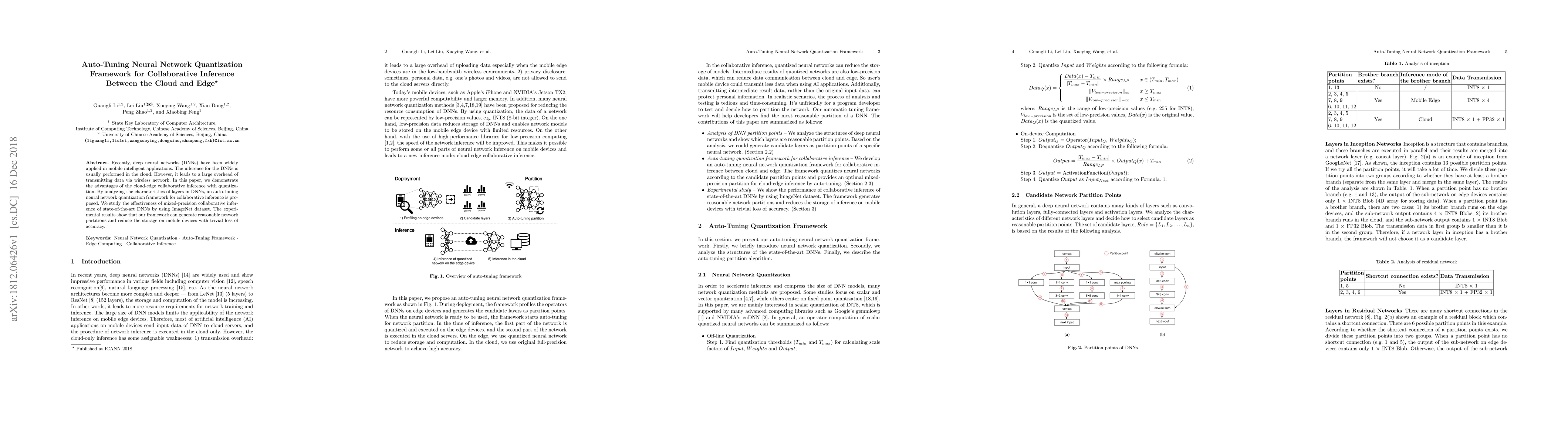This paper proposes an auto-tuning neural network quantization framework to optimize cloud-edge collaborative inference, demonstrating reduced storage and minimal accuracy loss through mixed-precision techniques on the ImageNet dataset. Experimental results show effective network partitioning and efficient data transmission.