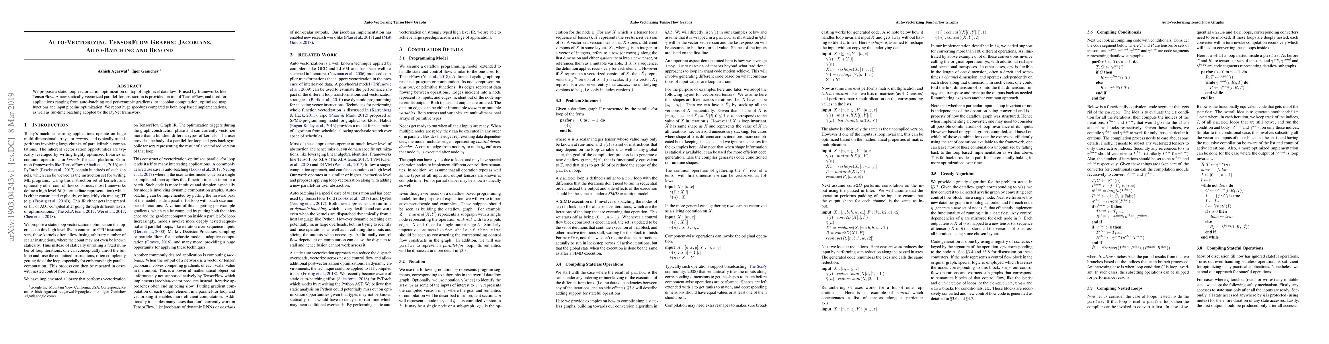 Researchers developed a static loop vectorization optimization for TensorFlow graphs, achieving huge speedups over traditional loop-based implementations in applications like auto-batching and Jacobian computation.