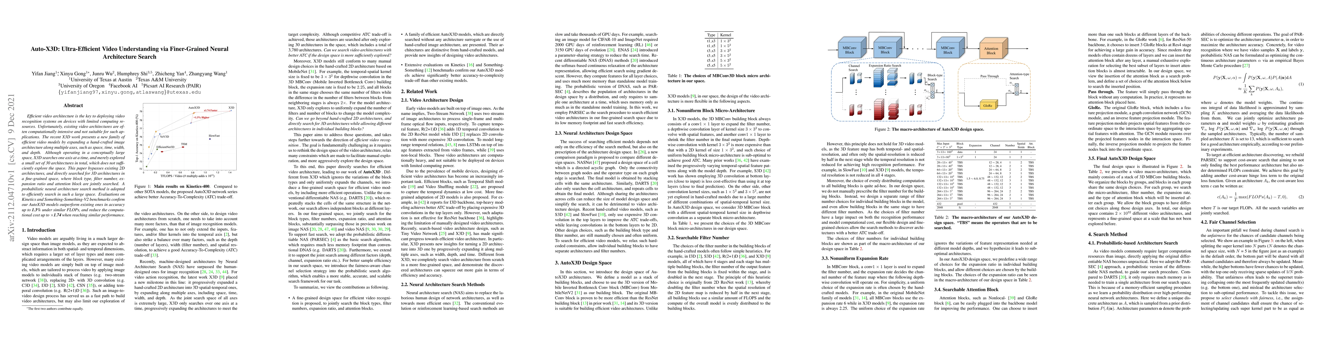 This paper introduces AutoX3D, a neural architecture search method that efficiently searches for ultra-efficient 3D video models, outperforming existing ones in accuracy while reducing computational cost up to x1.74.