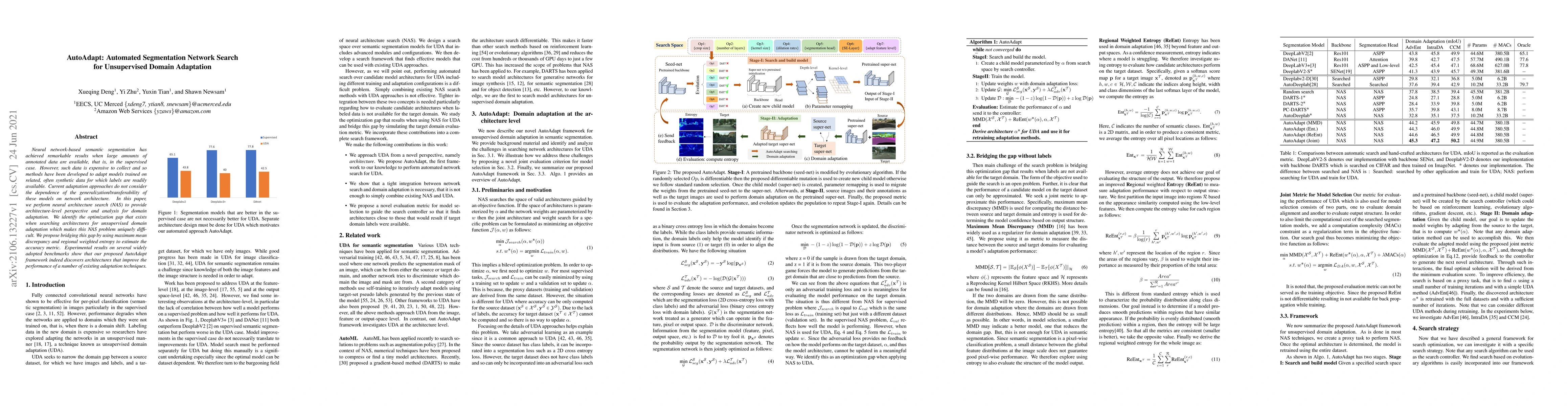 This paper introduces AutoAdapt, an automated neural architecture search (NAS) framework for unsupervised domain adaptation in semantic segmentation, addressing the lack of consideration for network architecture in current adaptation methods. The proposed method uses maximum mean discrepancy and regional weighted entropy to bridge the optimization gap in NAS for domain adaptation, leading to better-performing architectures for existing adaptation techniques.