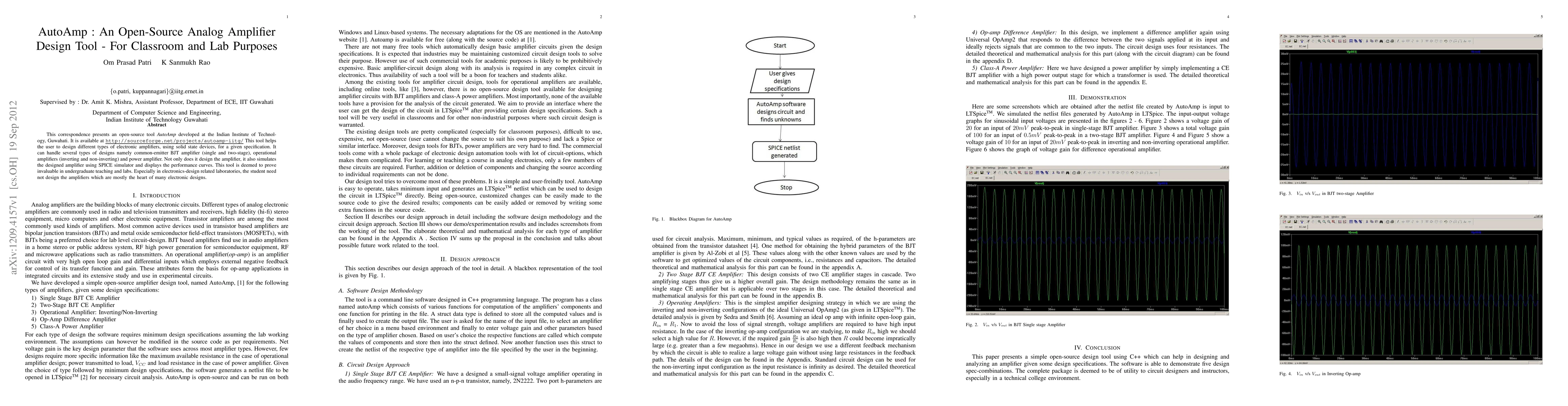 AutoAmp is an open-source tool for designing and simulating electronic amplifiers, making it a valuable resource for undergraduate teaching and lab purposes.