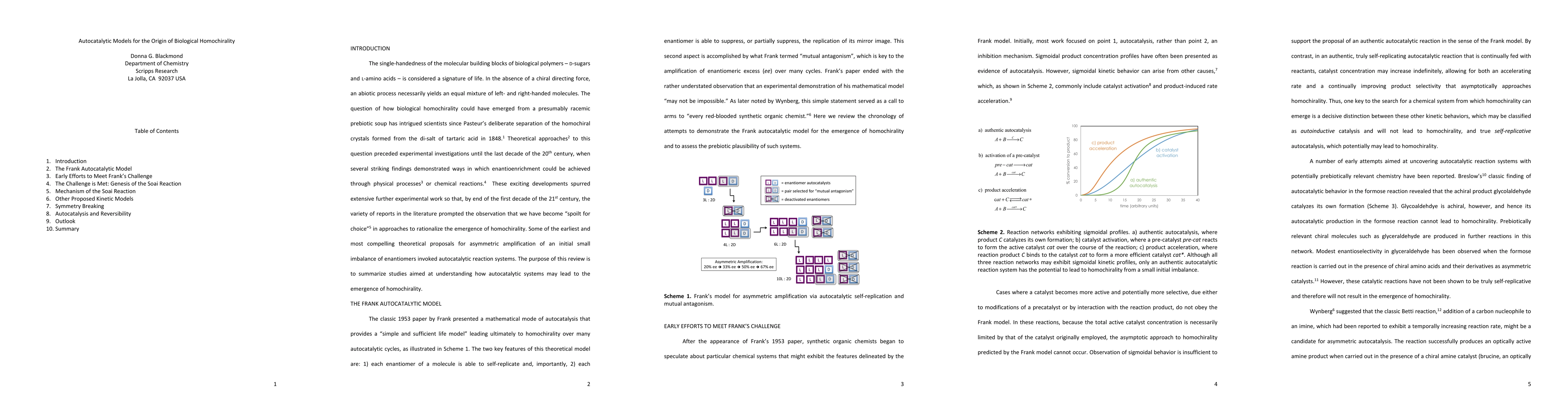 This paper explores autocatalytic models to explain the emergence of biological homochirality, focusing on how self-replicating molecular systems can lead to the preferential synthesis of one enantiomer over another. The study suggests that specific environmental conditions may have favored the development of life's chiral bias.