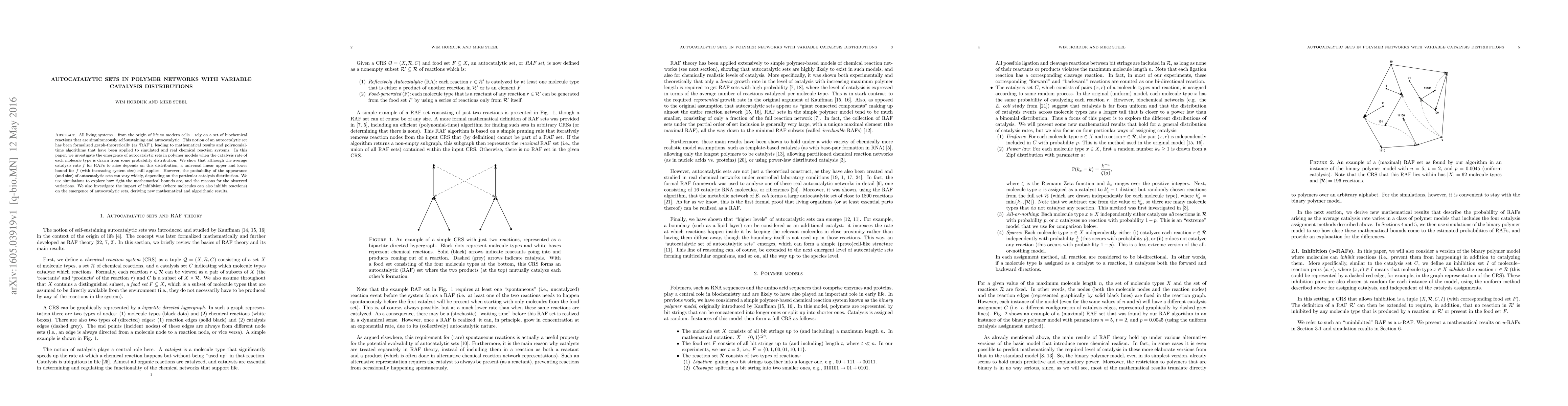 This paper explores the emergence of autocatalytic sets in polymer networks where catalysis rates vary according to probability distributions. It finds universal bounds for the average catalysis rate required for autocatalytic sets to form, but notes significant variability in their probability and size based on specific catalysis distributions.