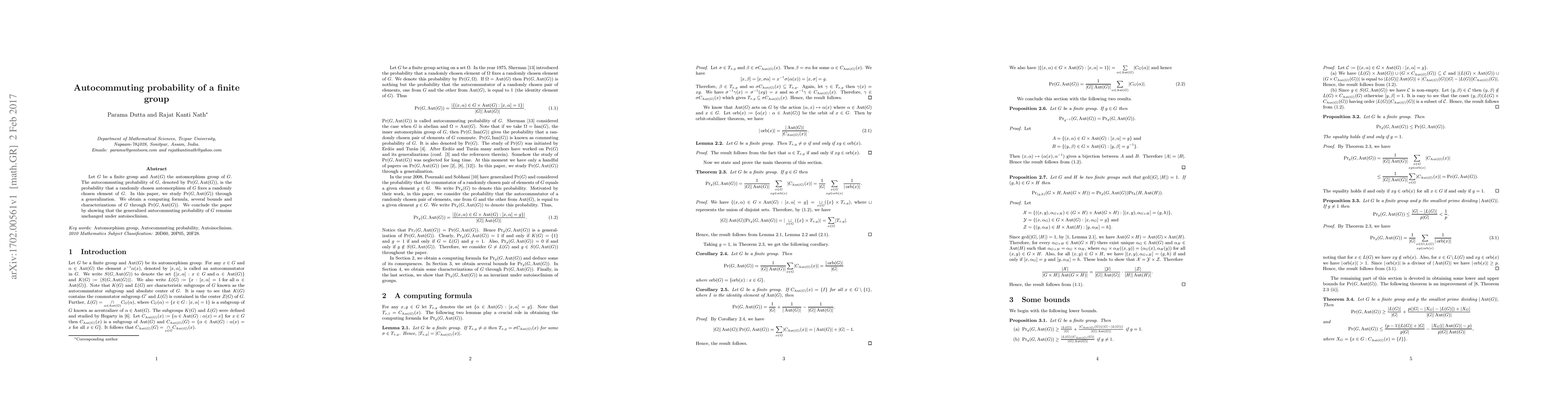 Let $G$ be a finite group and $\Aut(G)$ the automorphism group of $G$. The autocommuting probability of $G$, denoted by $\Pr(G, \Aut(G))$, is the probability that a randomly chosen automorphism of $G$ fixes a randomly chosen element of $G$. In this paper, we study $\Pr(G, \Aut(G))$ through a generalization. We obtain a computing formula, several bounds and characterizations of $G$ through $\Pr(G, \Aut(G))$. We conclude the paper by showing that the generalized autocommuting probability of $G$ remains unchanged under autoisoclinism.