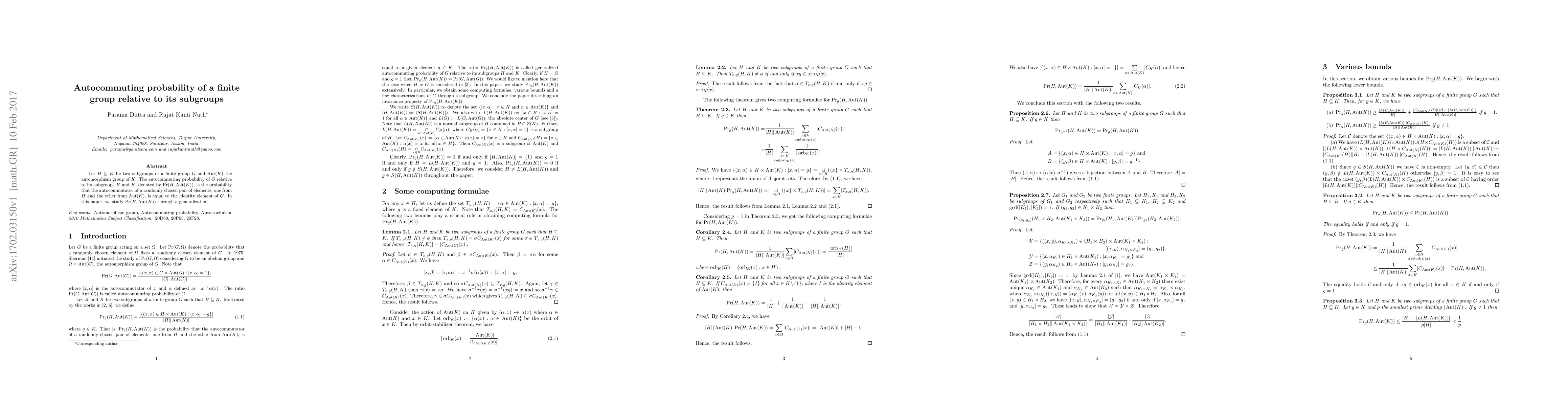 This paper studies the autocommuting probability of a finite group relative to its subgroups, finding generalizations and implications for understanding the behavior of groups.