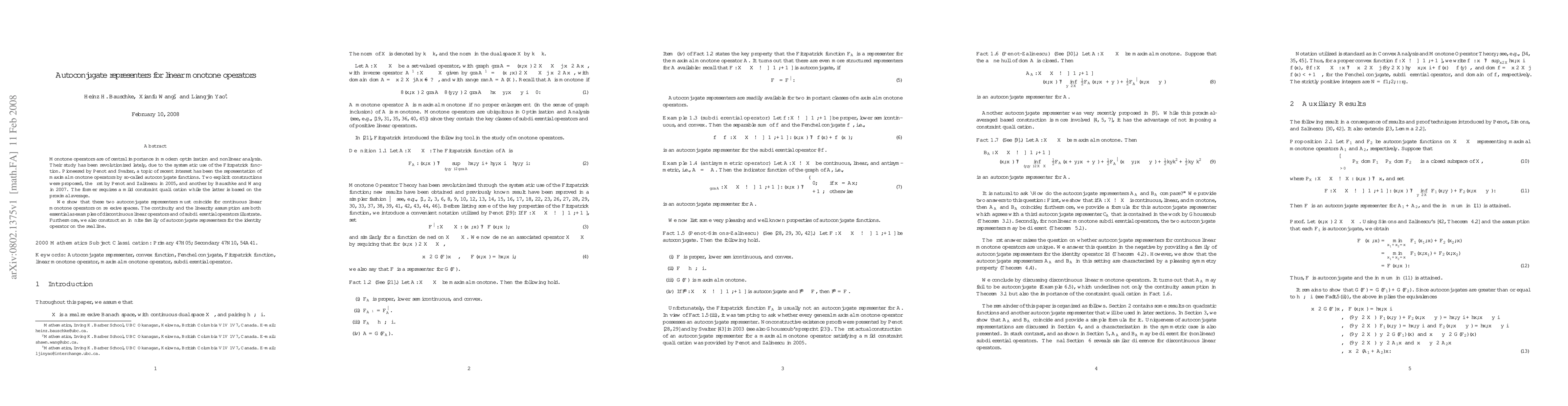 Monotone operators are of central importance in modern optimization and nonlinear analysis. Their study has been revolutionized lately, due to the systematic use of the Fitzpatrick function. Pioneered by Penot and Svaiter, a topic of recent interest has been the representation of maximal monotone operators by so-called autoconjugate functions. Two explicit constructions were proposed, the first by Penot and Zalinescu in 2005, and another by Bauschke and Wang in 2007. The former requires a mild constraint qualification while the latter is based on the proximal average. We show that these two autoconjugate representers must coincide for continuous linear monotone operators on reflexive spaces. The continuity and the linearity assumption are both essential as examples of discontinuous linear operators and of subdifferential operators illustrate. Furthermore, we also construct an infinite family of autoconjugate representers for the identity operator on the real line.