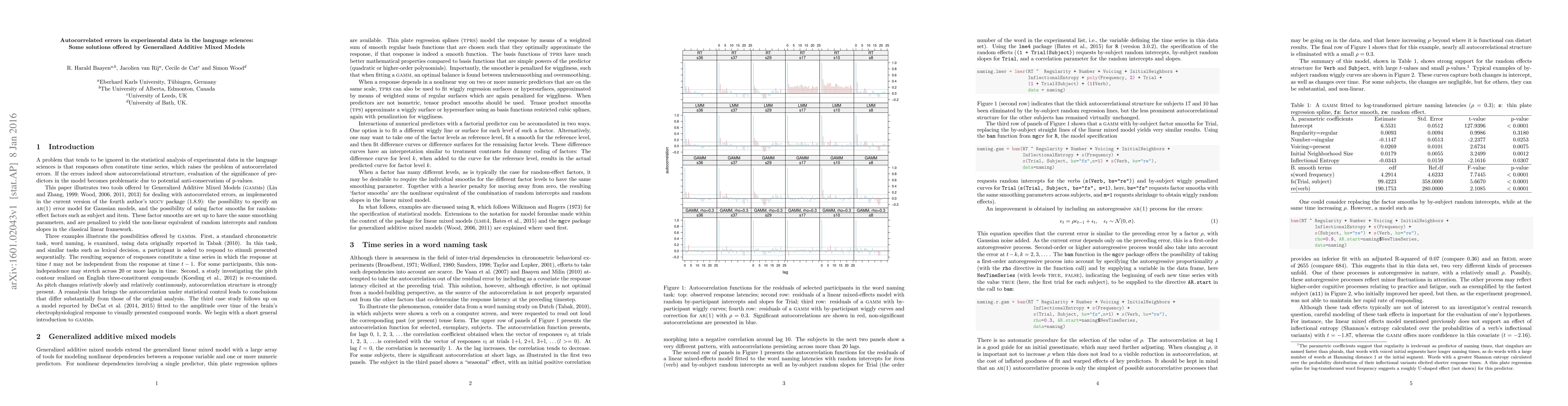 This paper discusses the issue of autocorrelated errors in time-series responses in language sciences experiments, impacting the significance of predictors. It introduces Generalized Additive Mixed Models (GAMMs) solutions, specifically using ar(1) error models and factor smooths for subject and item random effects, ensuring non-linear equivalents of random intercepts and slopes. Three case studies illustrate these methods.