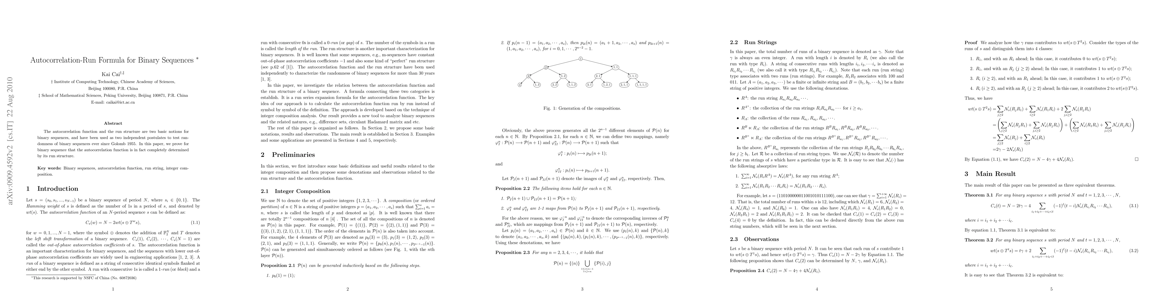 Summary: This paper demonstrates that the autocorrelation function of a binary sequence is entirely determined by its run structure, challenging the traditional view of these two properties as independent measures of randomness.