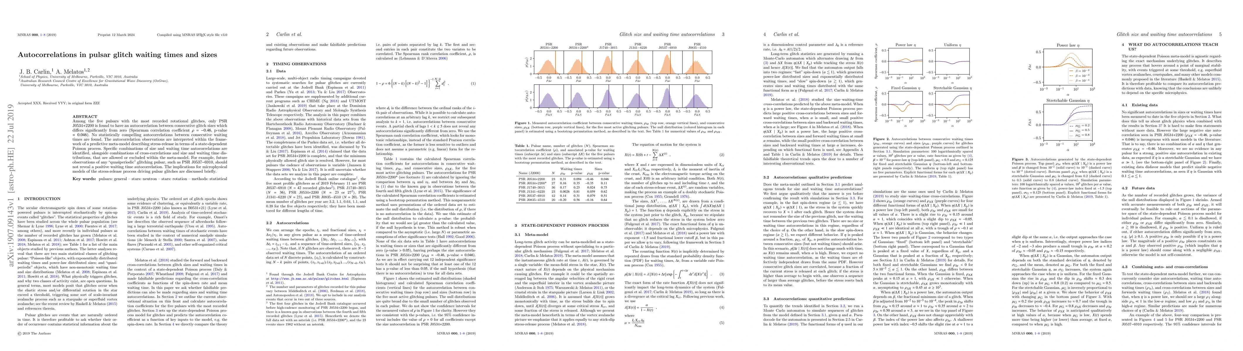 Among the five pulsars with the most recorded rotational glitches, only PSR J0534$+$2200 is found to have an autocorrelation between consecutive glitch sizes which differs significantly from zero (Spearman correlation coefficient $\rho=-0.46$, p-value $=0.046$). No statistically compelling autocorrelations between consecutive waiting times are found. The autocorrelation observations are interpreted within the framework of a predictive meta-model describing stress-release in terms of a state-dependent Poisson process. Specific combinations of size and waiting time autocorrelations are identified, alongside combinations of cross-correlations and size and waiting time distributions, that are allowed or excluded within the meta-model. For example, future observations of any "quasiperiodic" glitching pulsar, such as PSR J0537$-$6910, should not reveal a positive waiting time autocorrelation. The implications for microphysical models of the stress-release process driving pulsar glitches are discussed briefly.