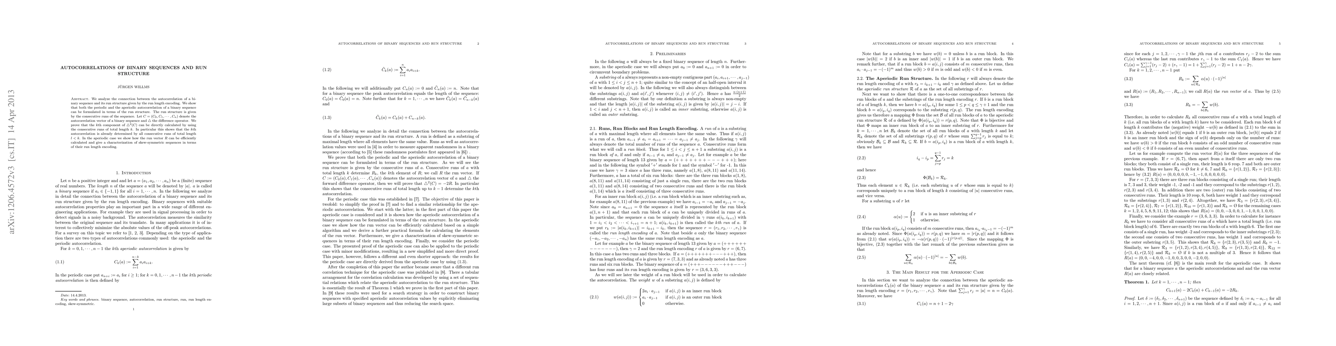 This paper explores the relationship between the autocorrelation of binary sequences and their run structure, demonstrating that both periodic and aperiodic autocorrelations can be expressed in terms of run length encoding. It proves that the kth component of the second order difference operator of the autocorrelation vector is determined by consecutive runs of total length k.