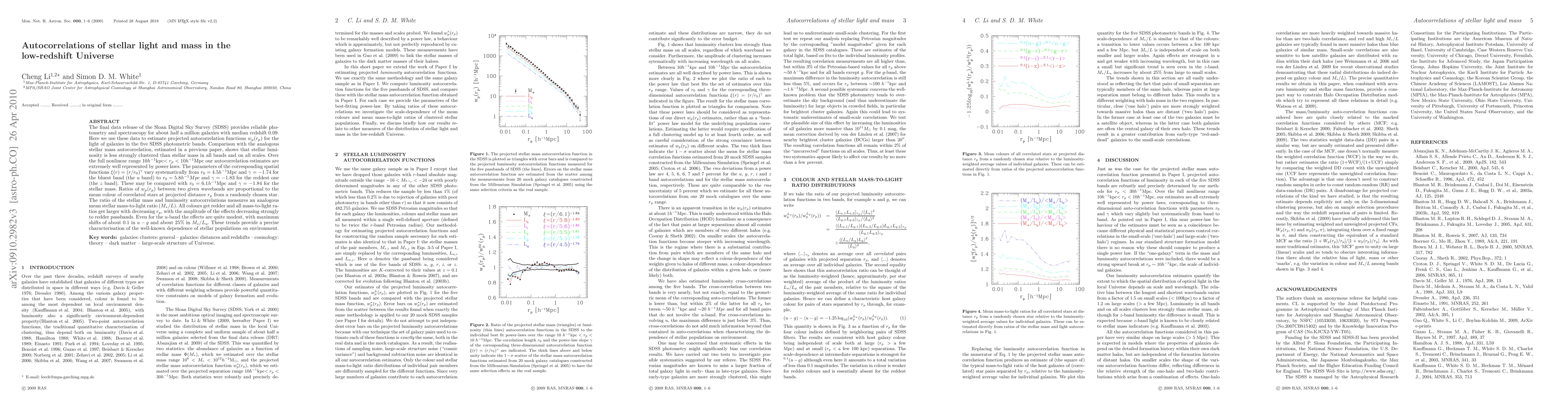 This paper analyzes the autocorrelation functions of galaxy light and stellar mass from the Sloan Digital Sky Survey, finding that stellar luminosity is less clustered than stellar mass across all bands and scales. The study reveals that the spatial clustering parameters vary systematically with wavelength, providing insights into the environmental dependence of stellar populations.