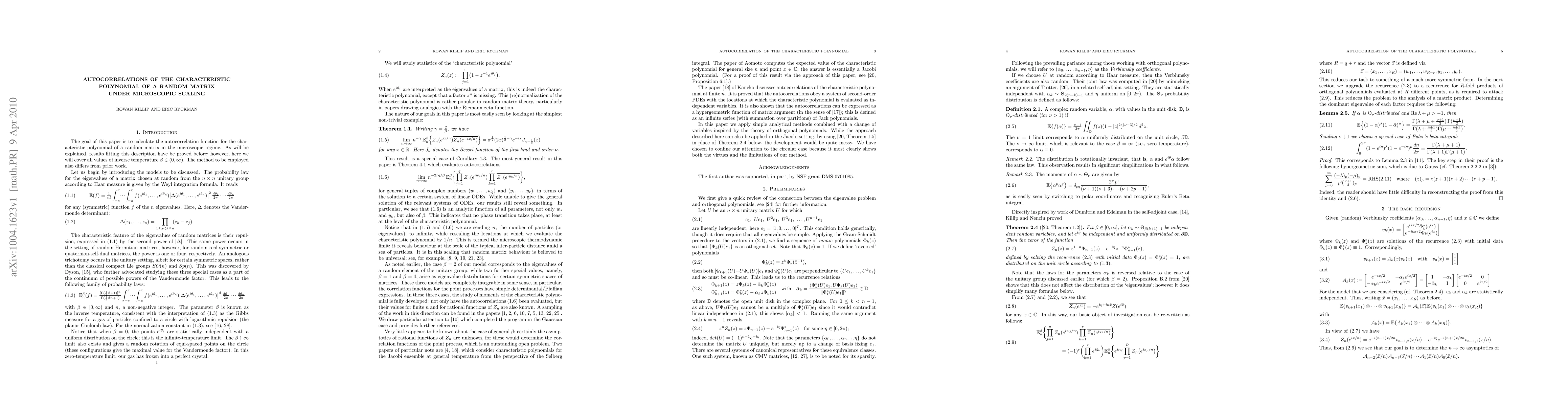 We calculate the autocorrelation function for the characteristic polynomial of a random matrix in the microscopic scaling regime. While results fitting this description have be proved before, we will cover all values of inverse temperature $\beta \in (0,\infty)$. The method also differs from prior work, relying on matrix models introduced by Killip and Nenciu.