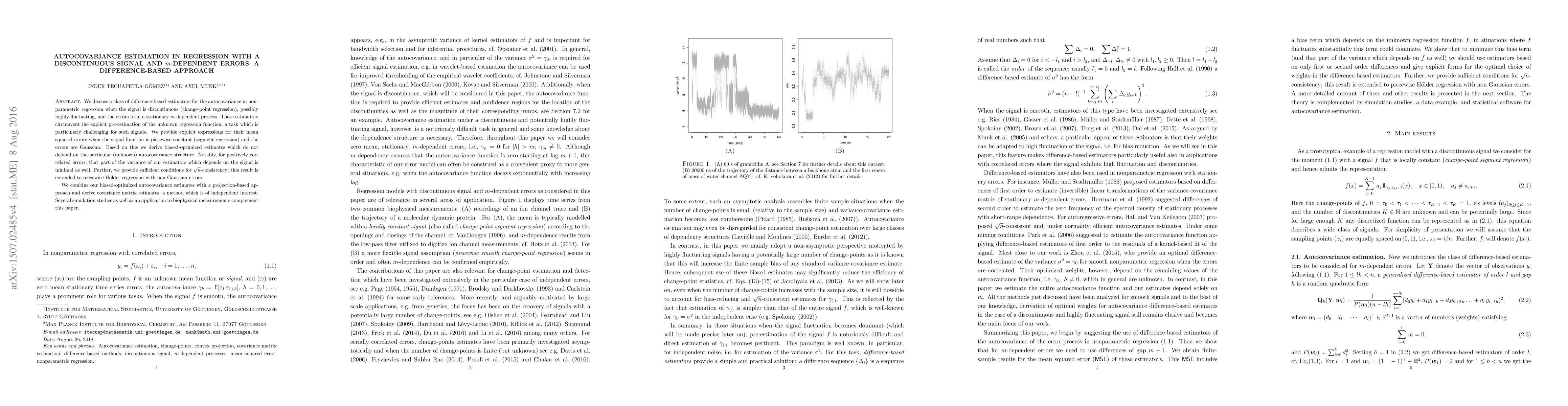 Researchers develop a new method for estimating autocovariance in nonparametric regression with discontinuous signals and m-dependent errors, achieving unbiased estimates that don't rely on knowing the underlying function.