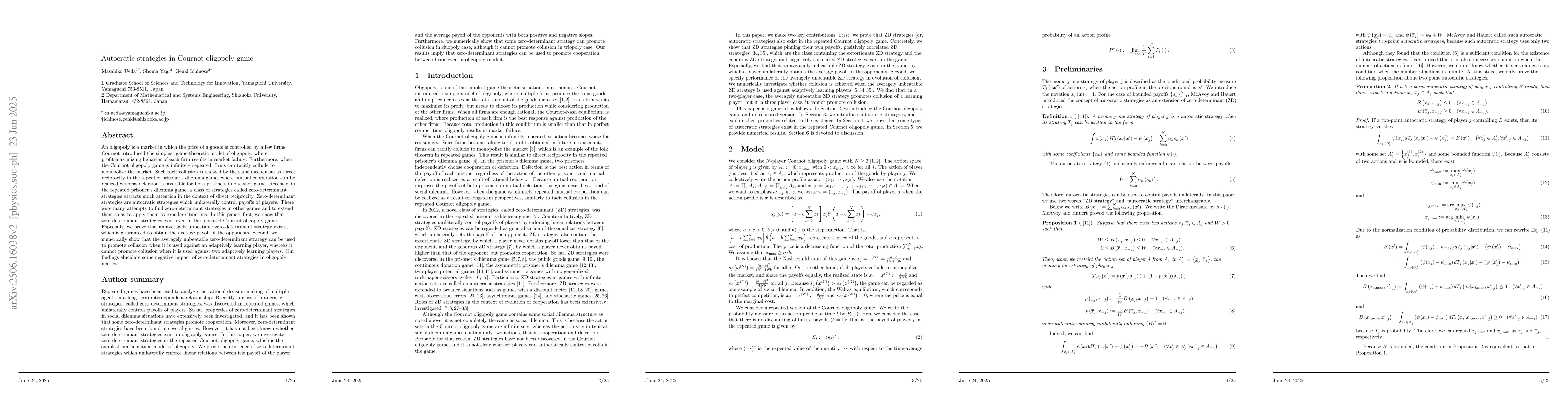 A new class of autocratic strategies was identified and analyzed in the context of Cournot oligopoly games.