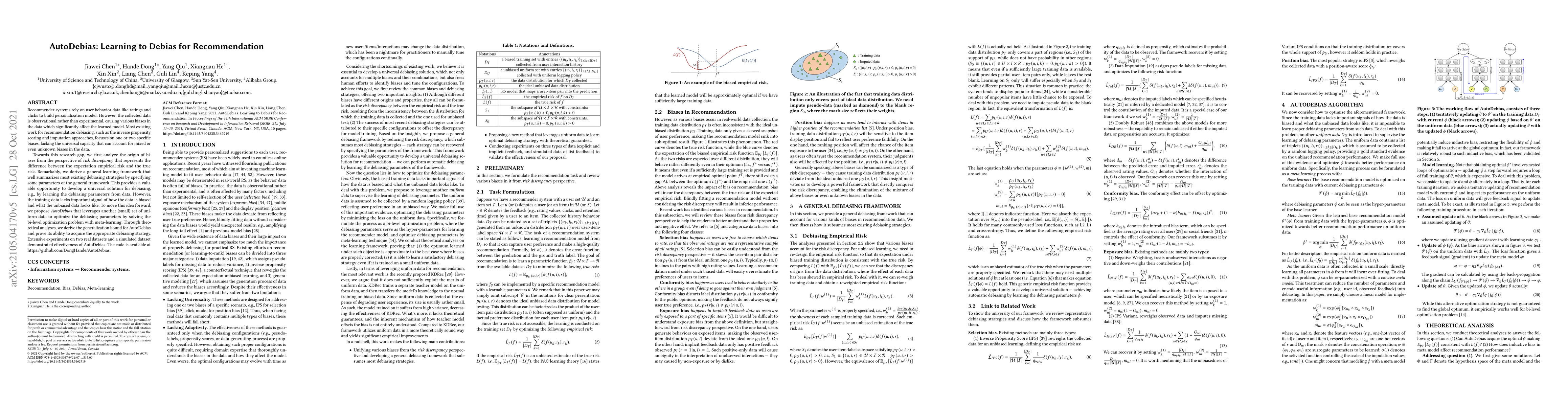 A new approach called AutoDebias is introduced to learn debiasing for recommendation systems, addressing a common issue with existing methods that only focus on specific biases.