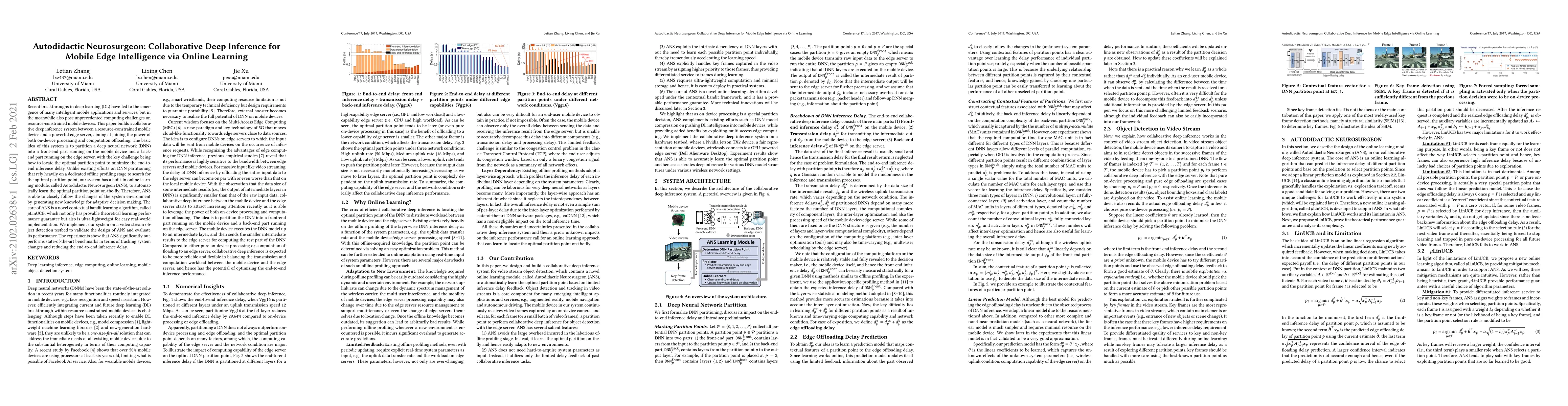 Recent breakthroughs in deep learning (DL) have led to the emergence of many intelligent mobile applications and services, but in the meanwhile also pose unprecedented computing challenges on resource-constrained mobile devices. This paper builds a collaborative deep inference system between a resource-constrained mobile device and a powerful edge server, aiming at joining the power of both on-device processing and computation offloading. The basic idea of this system is to partition a deep neural network (DNN) into a front-end part running on the mobile device and a back-end part running on the edge server, with the key challenge being how to locate the optimal partition point to minimize the end-to-end inference delay. Unlike existing efforts on DNN partitioning that rely heavily on a dedicated offline profiling stage to search for the optimal partition point, our system has a built-in online learning module, called Autodidactic Neurosurgeon (ANS), to automatically learn the optimal partition point on-the-fly. Therefore, ANS is able to closely follow the changes of the system environment by generating new knowledge for adaptive decision making. The core of ANS is a novel contextual bandit learning algorithm, called $\mu$LinUCB, which not only has provable theoretical learning performance guarantee but also is ultra-lightweight for easy real-world implementation. We implement our system on a video stream object detection testbed to validate the design of ANS and evaluate its performance. The experiments show that ANS significantly outperforms state-of-the-art benchmarks in terms of tracking system changes and reducing the end-to-end inference delay.