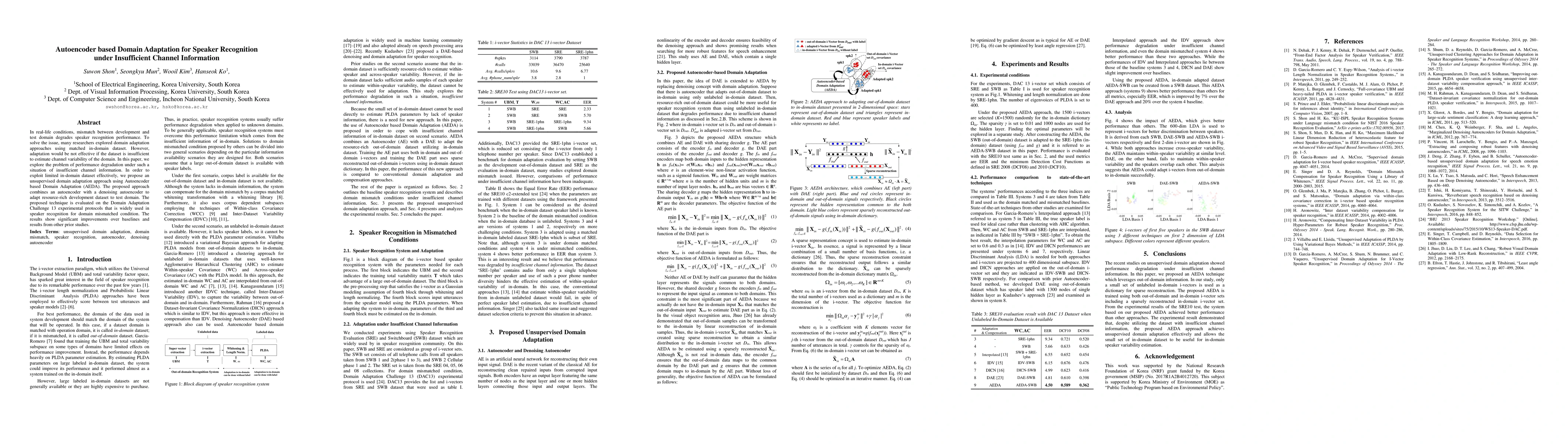 This paper proposes an Autoencoder based Domain Adaptation (AEDA) method to enhance speaker recognition performance under insufficient channel information. The approach combines an autoencoder with a denoising autoencoder to effectively utilize limited in-domain data, achieving significant improvements over baselines in domain adaptation challenges.