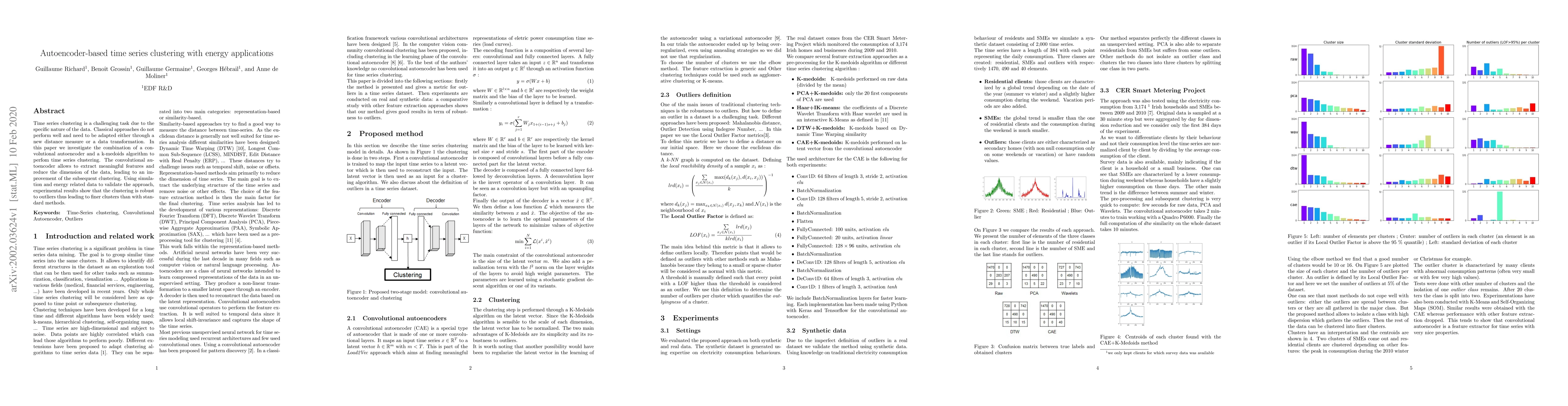 This paper proposes a novel time series clustering method combining convolutional autoencoders for feature extraction and k-medoids for clustering. The approach effectively reduces data dimensionality and improves clustering robustness, leading to finer clusters compared to traditional methods, as validated through simulations and energy-related datasets.
