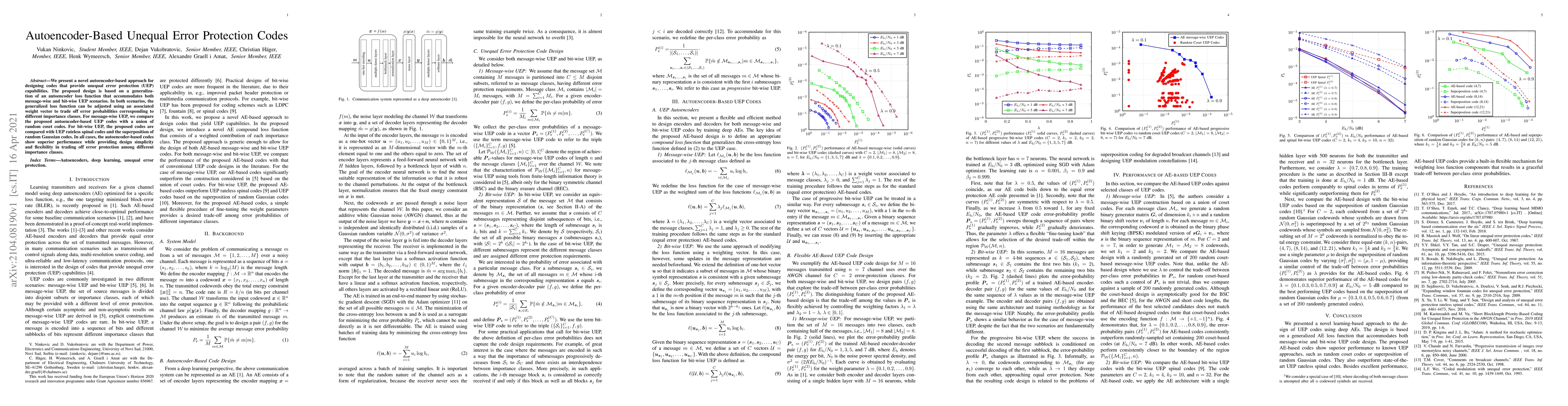 This paper introduces an autoencoder-based method for creating unequal error protection (UEP) codes, which can be tailored for both message-wise and bit-wise UEP scenarios. The approach demonstrates superior performance compared to existing methods while offering design flexibility.