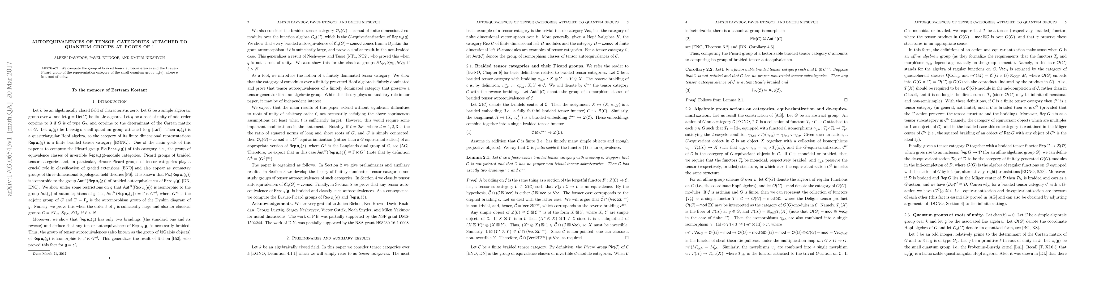 This research calculates the group of braided tensor autoequivalences and the Brauer-Picard group for the representation category of the small quantum group u_q(g), where q is a root of unity, providing significant insights into tensor categories associated with quantum groups.