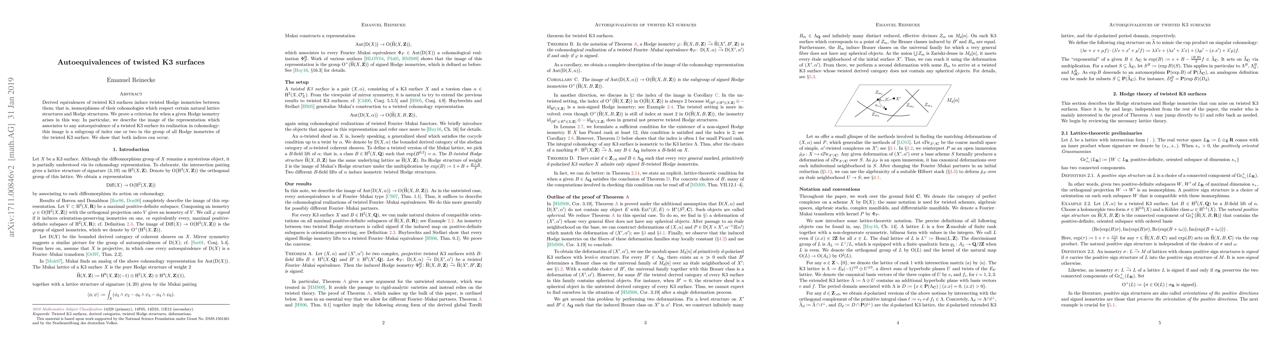 The paper establishes a criterion for Hodge isometries between twisted K3 surfaces arising from derived equivalences, and determines the image of the representation linking autoequivalences to cohomology, which is a subgroup of index one or two within the full group of Hodge isometries.