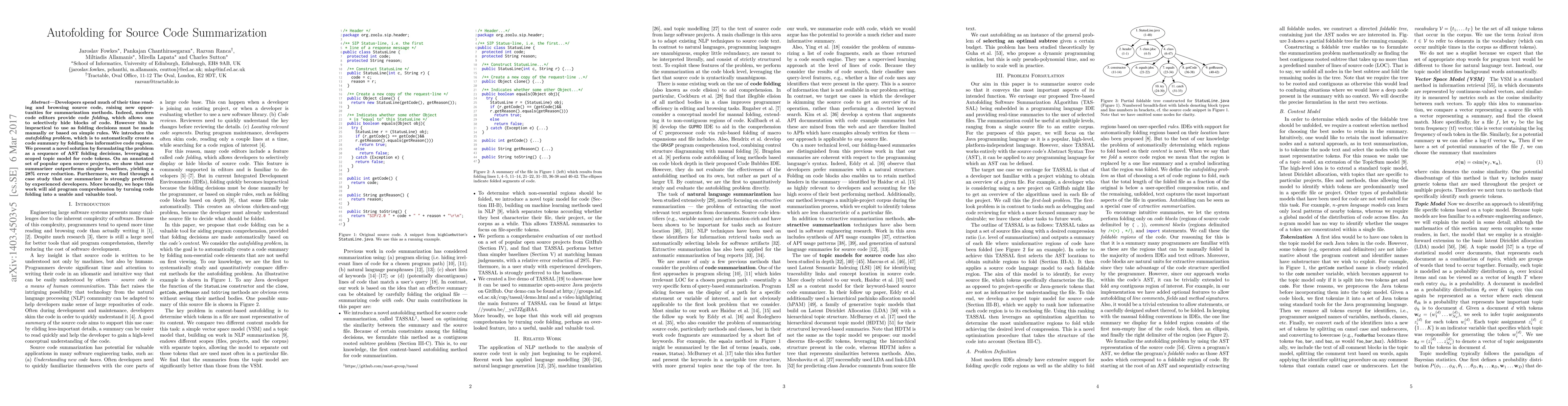 A new approach to source code summarization uses automated folding decisions to reduce less informative code regions, reducing errors by 28% and being preferred by experienced developers.