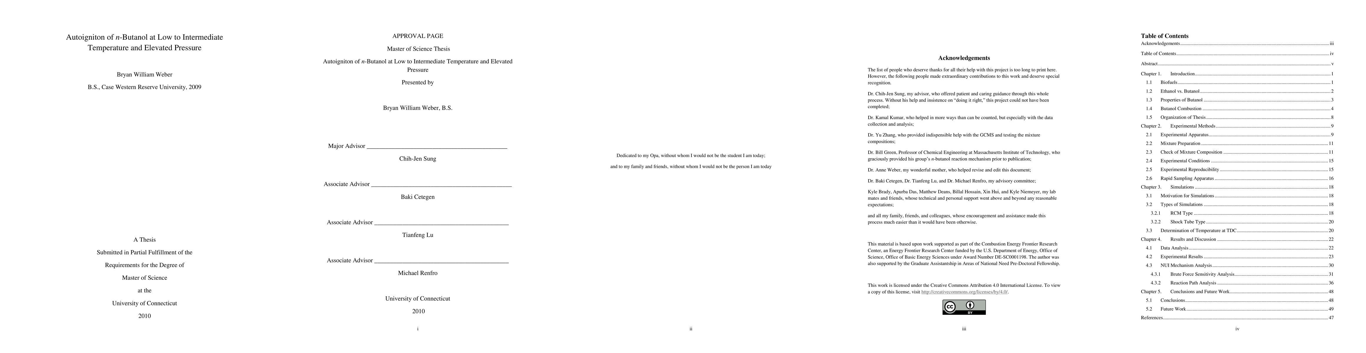 Researchers investigated the autoignition of n-butanol at low to intermediate temperatures and high pressures, finding a non-linear correlation between ignition delay and initial oxygen mole fraction, fuel mole fraction, and compressed pressure.