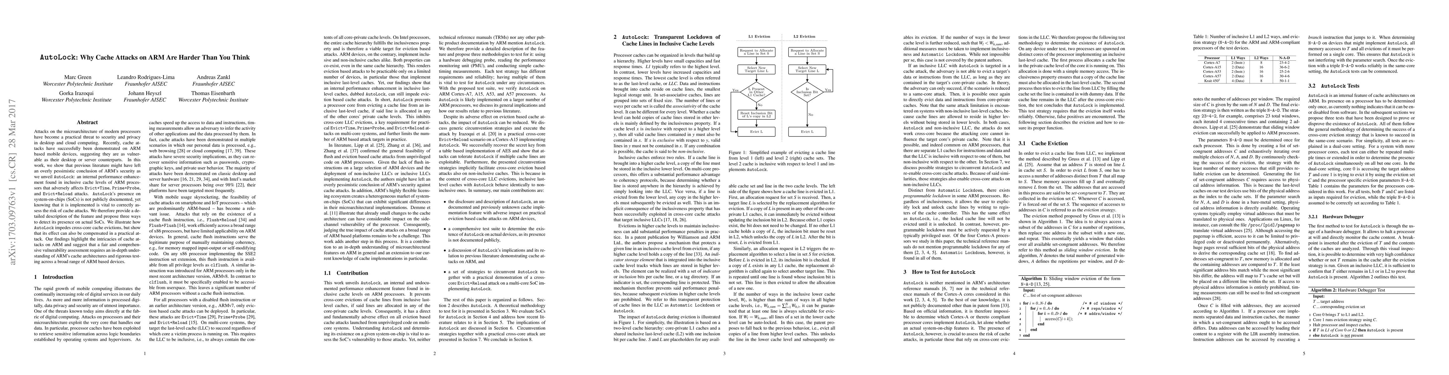 Attacks on the microarchitecture of modern processors have become a practical threat to security and privacy in desktop and cloud computing. Recently, cache attacks have successfully been demonstrated on ARM based mobile devices, suggesting they are as vulnerable as their desktop or server counterparts. In this work, we show that previous literature might have left an overly pessimistic conclusion of ARM's security as we unveil AutoLock: an internal performance enhancement found in inclusive cache levels of ARM processors that adversely affects Evict+Time, Prime+Probe, and Evict+Reload attacks. AutoLock's presence on system-on-chips (SoCs) is not publicly documented, yet knowing that it is implemented is vital to correctly assess the risk of cache attacks. We therefore provide a detailed description of the feature and propose three ways to detect its presence on actual SoCs. We illustrate how AutoLock impedes cross-core cache evictions, but show that its effect can also be compensated in a practical attack. Our findings highlight the intricacies of cache attacks on ARM and suggest that a fair and comprehensive vulnerability assessment requires an in-depth understanding of ARM's cache architectures and rigorous testing across a broad range of ARM based devices.