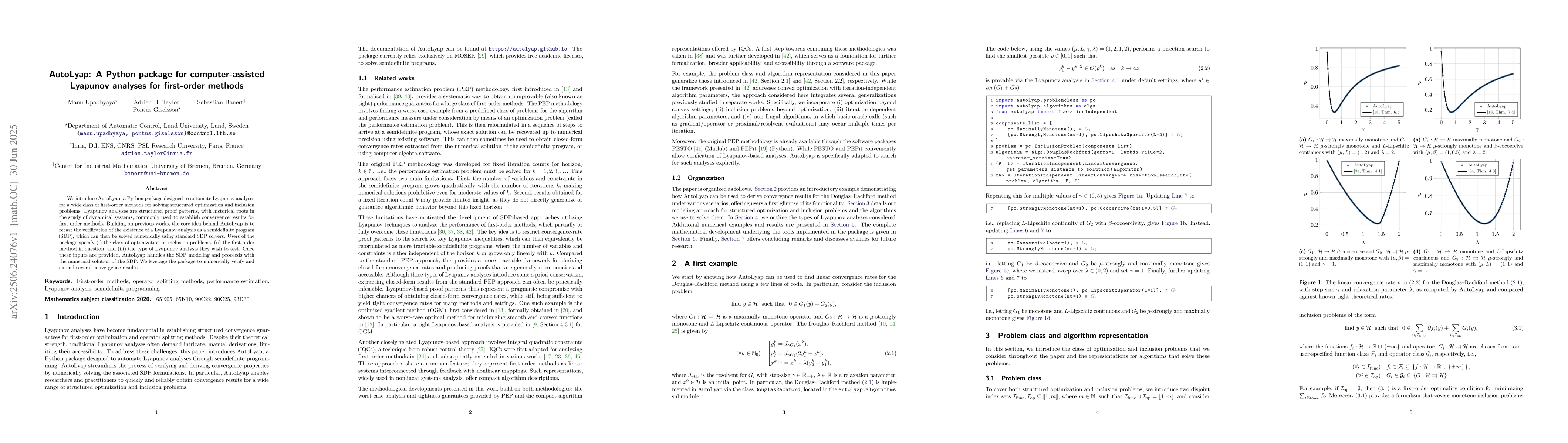 The development of AutoLyap, a Python package for automating Lyapunov analysis and convergence guarantees for structured optimization problems.