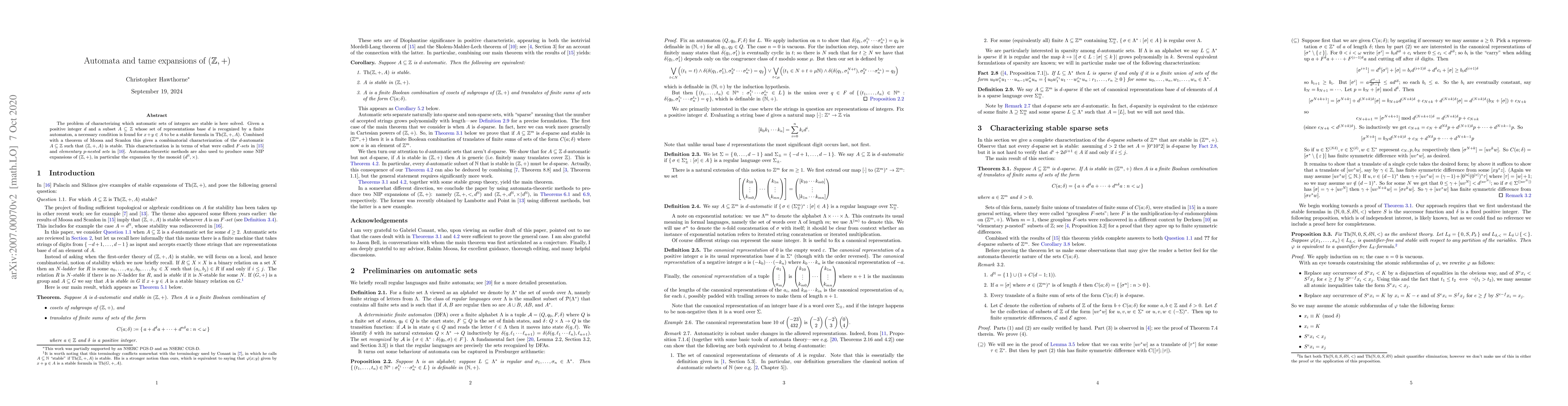 Researchers solved the problem of characterizing automatic sets of integers that are stable under certain operations. They found a necessary condition for stability in terms of finite automata and provided a combinatorial characterization of the sets.