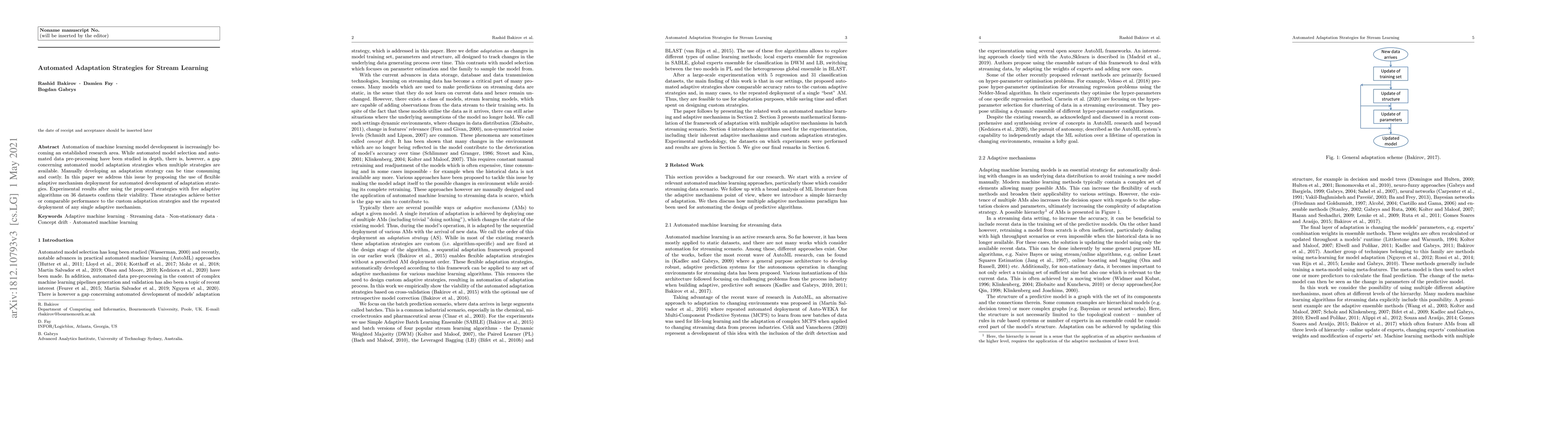This paper proposes automated adaptive mechanisms for developing adaptation strategies in stream learning, addressing the lack of research in this area. Experimental results show that these strategies achieve better or comparable performance to custom strategies and single adaptive mechanisms across 36 datasets.